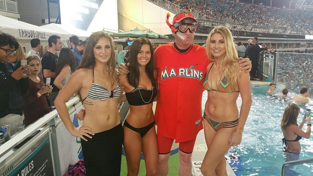 Darren Rovell tweeted: Marlins Man living it up in the pools at Jaguars game tonight